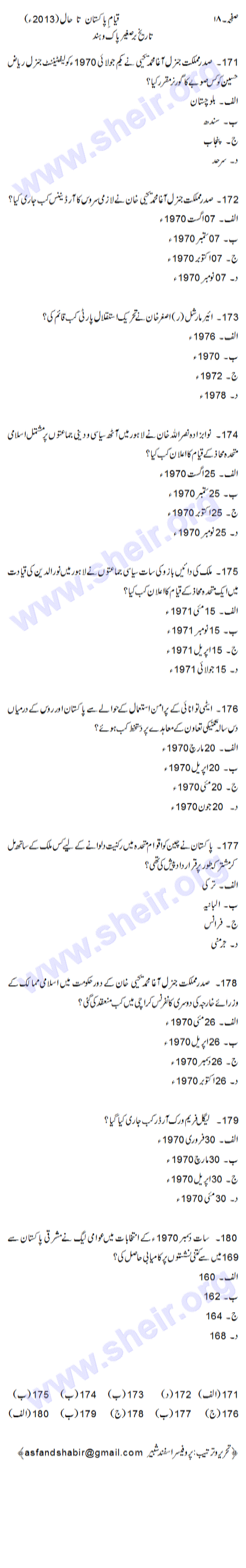 Urdu Pakistan Studies MCQs18 Pakistan Studies Multiple Choice Questions (MCQs) in Urdu. The following MCQs are from the creation of Pakistan up to the year of 2013. Pages: 1 … 15 | 16 | 17 | 18 | 19 … 30