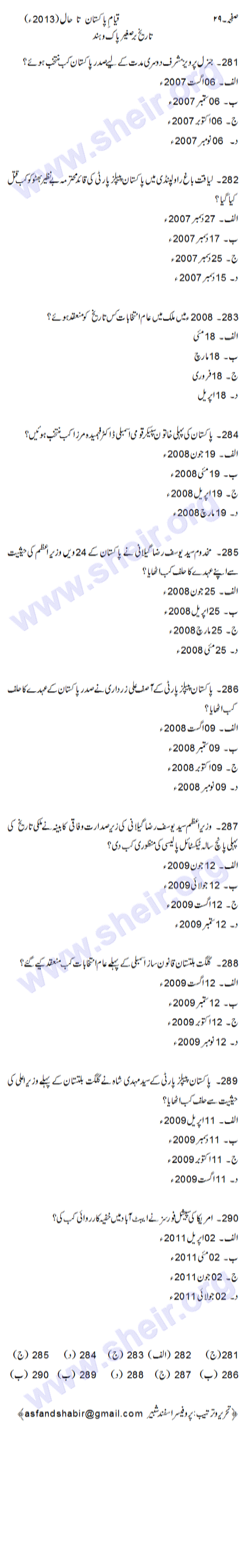 Urdu Pakistan Studies MCQs29 Pakistan Studies Multiple Choice Questions (MCQs) in Urdu. The following MCQs are from the creation of Pakistan up to the year of 2013. Pages: 1 … 25 | 26 | 27 | 28 | 29 | 30